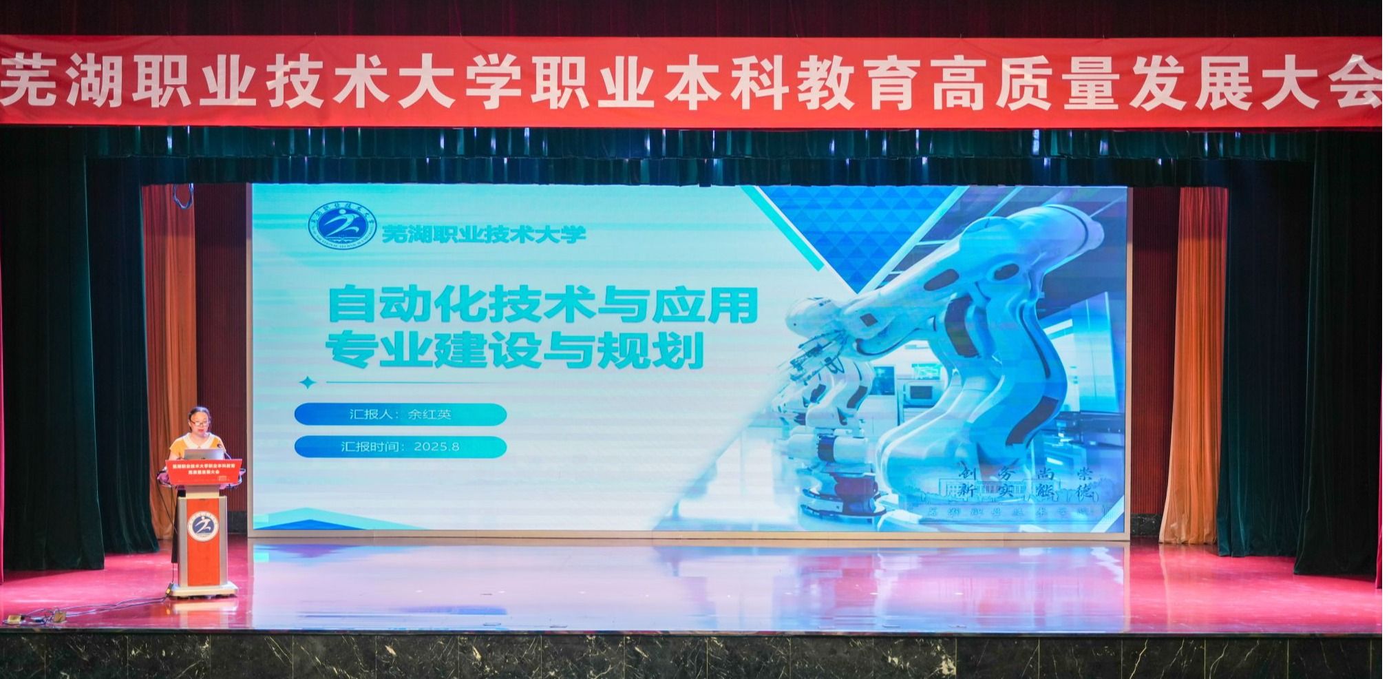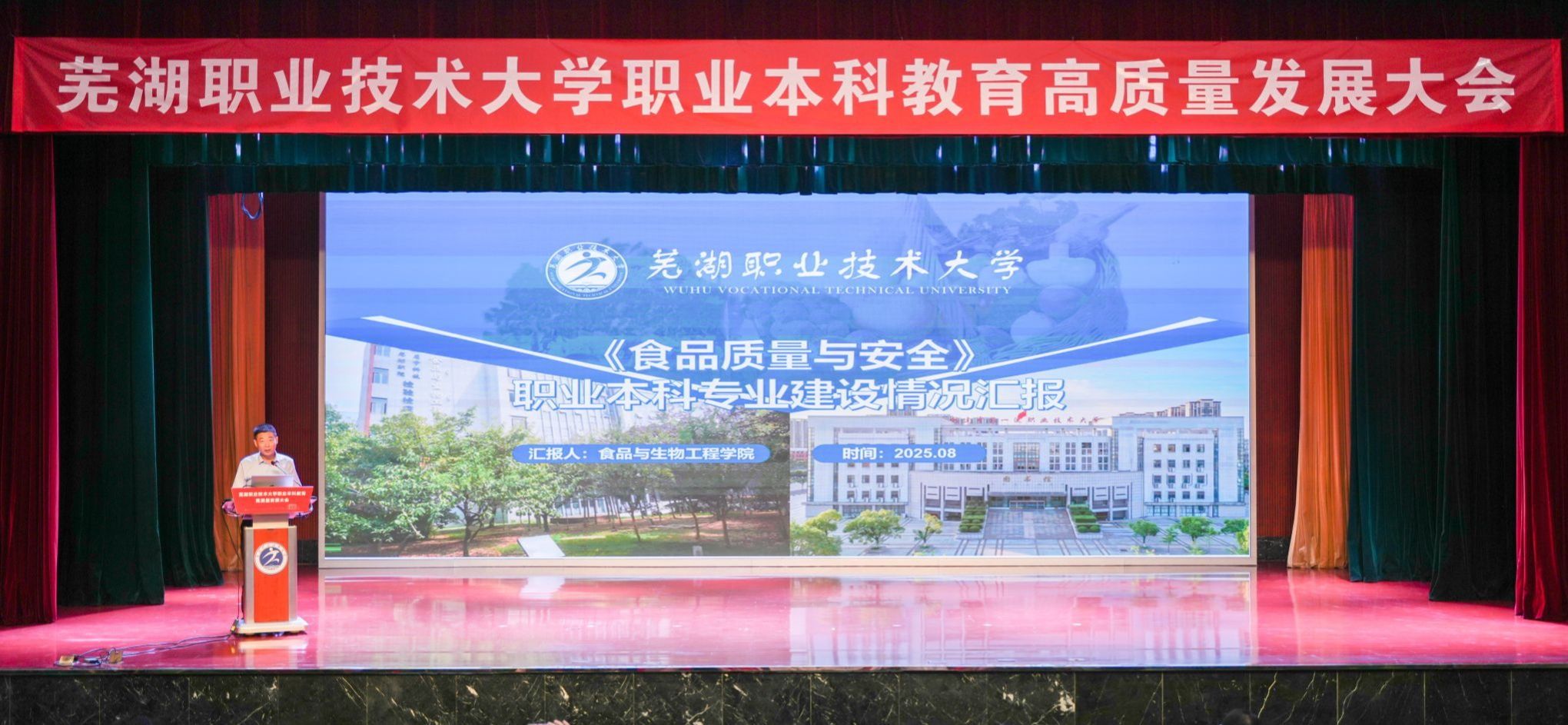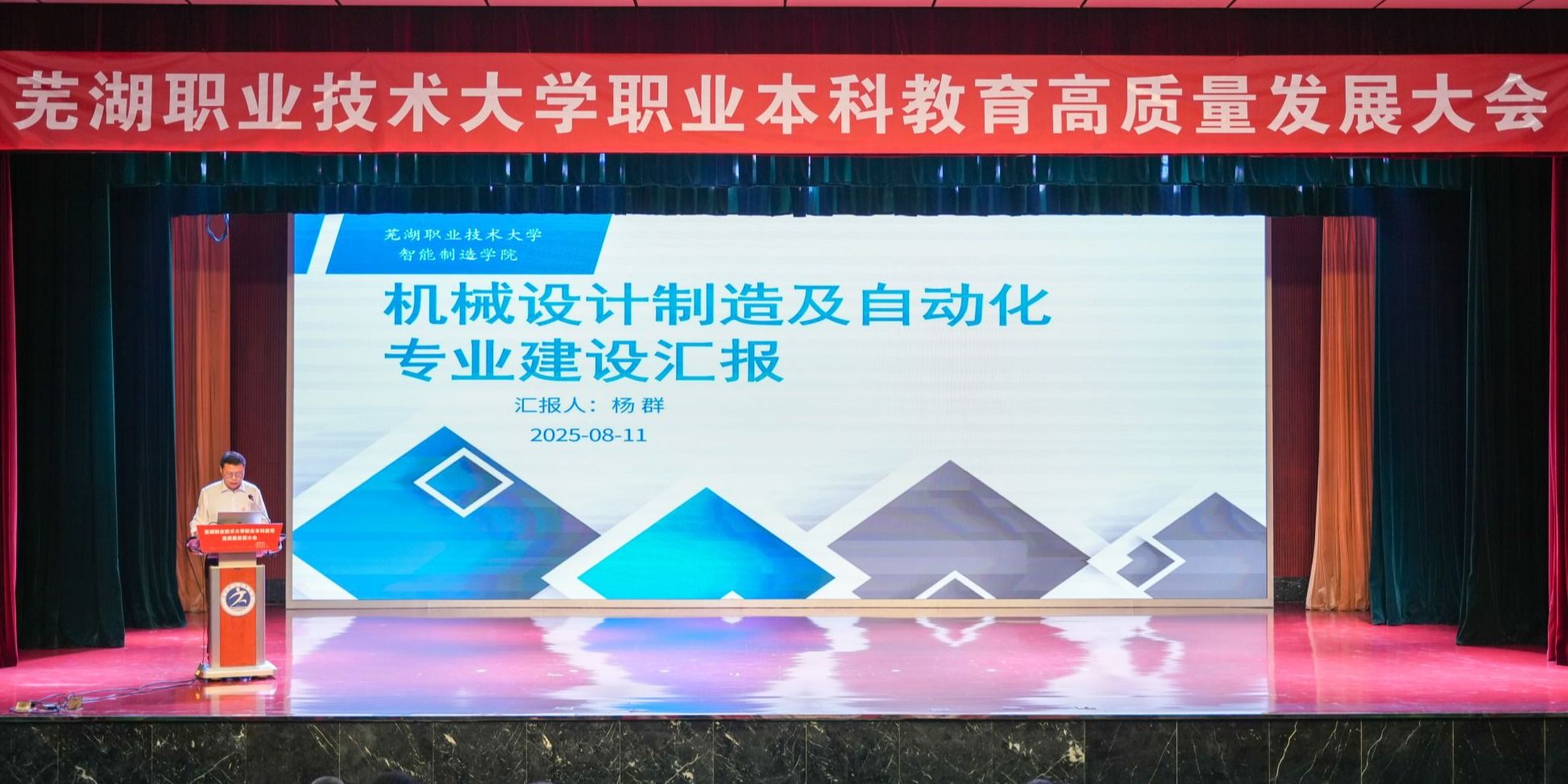 8月11日上午,芜湖职业技术大学职业本科教育高质量发展大会在文津校区大礼堂隆重召开。芜湖市委书记宁波出席并致辞。市人大常委会主任张峰,市政协主席张东,市有关部门负责同志参加。校党委书记王志鹏等党政班子成员,部分退休老领导、校友代表、师生代表等500余人参加大会,共同见证学校发展历程中的里程碑时刻。大会由芜湖市人民政府副市长朱的娥主持。