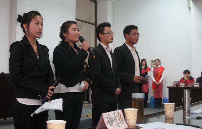 经过现场评分,外语系邰杰获一等奖,经管系储蓄良、国贸系段丽君获二等奖,外语系高意、陈洪、园艺系刘磊获三等奖。(应用外语系)
