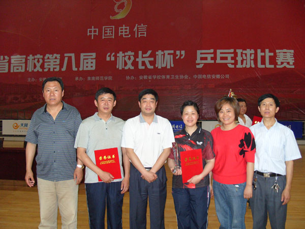 为加强高校体育工作,激发高校领导干部参加体育锻炼的热情,促进各高校之间的交流,推动高校体育工作的开展,由安徽省教育厅主办,淮南师范学院承办的“安徽省高校第八届‘校长杯’乒乓球比赛”,于5月28日在淮南市体育馆内点燃战火,我院陈旭东、袁龙喜、吴启秀等三位院领导参加了本次比赛。
