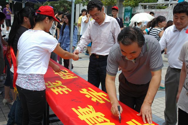 活动得到了院领导、老师和同学们的积极响应,师生们纷纷在印有“我禁烟,我健康,我快乐——我承诺做一个自觉遵守学院禁烟规定的人”的横幅上签上自己的名字,并表示会自觉遵守校园禁烟规定,为构建文明、和谐校园,打造“无烟校园”而努力。