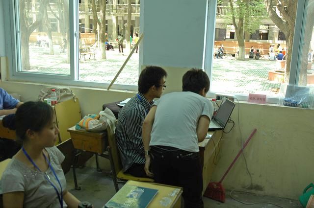 图为省招生考试院沈滔副院长检查考务工作