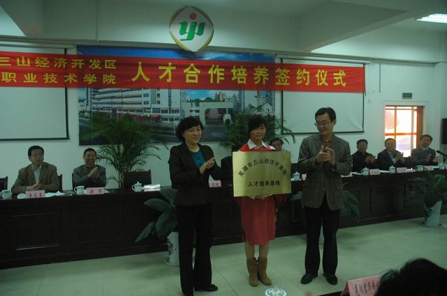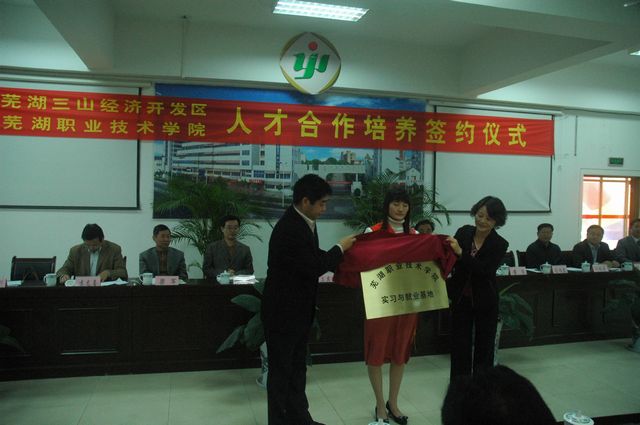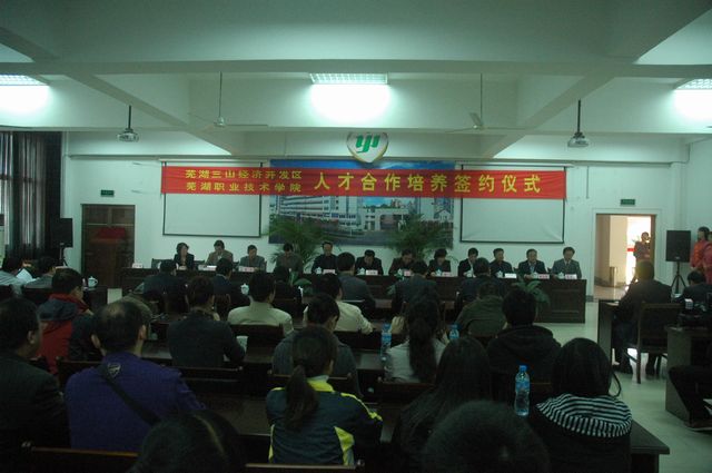 招聘会上,我院同时与芜湖三山经济开发区举行了人才合作培养签约仪式。市政府副市长詹云超,省教育厅有关部门领导,三山区委、区政府及芜湖市人力资源和社会保障局领导出席了签约仪式。学院有关部门及各系负责人、部分教师及学生代表参加了签约仪式。签约仪式由副院长夏效祥主持。