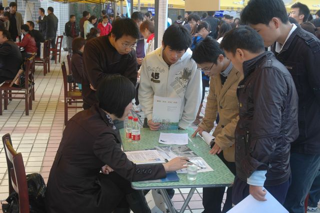 上午8时许,招聘会正式开始。现场人潮涌动,场面异常火爆,2011届毕业生都在为自己寻找心仪的企业,企业也在为自身挑选合适的人才。招聘会还吸引了部分大一、大二的同学前来参观,熟悉企业要求,为今后就业提前做好准备。