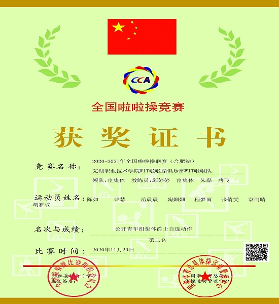 我校啦啦操俱乐部是继2019年荣获两项全国冠军以后,又一次取得优异成绩。他们分别来自建筑工程学院、应用外语学院、生物工程学院、国际经贸学院,并得到了以上四个学院领导的大力支持。