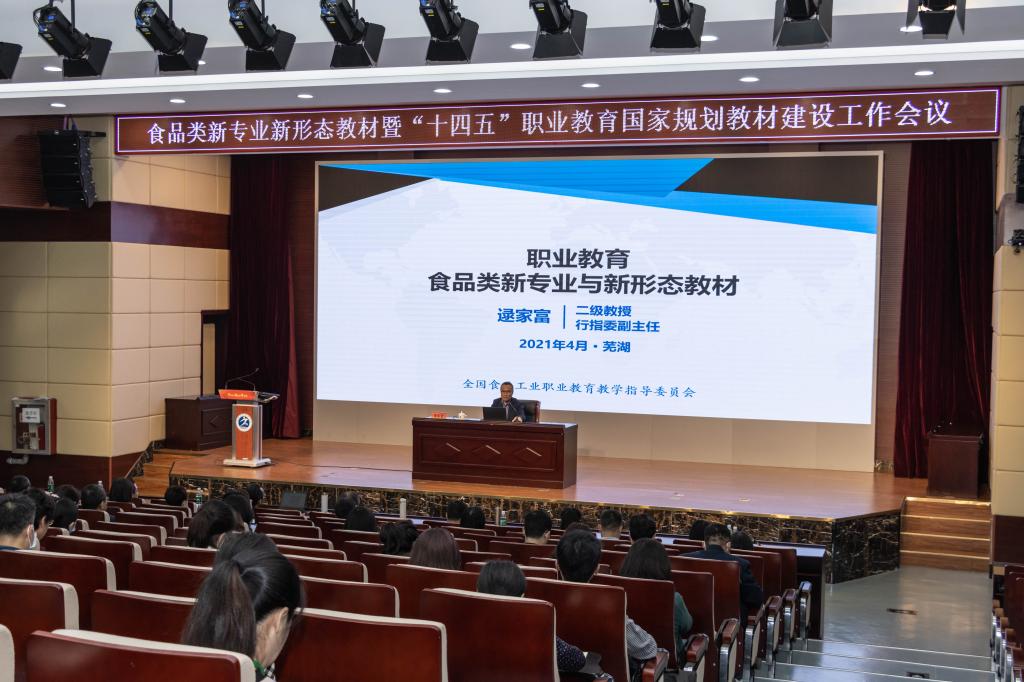 为深入贯彻落实《国务院关于印发<国家职业教育改革实施方案>的通知》,《教育部关于印发<职业教育专业目录(2021年)>的通知》等文件要求,全面推进三教改革,为即将启动的“十四五”职业教育规划教材申报做好准备,助力学校“双高”建设,4月16日至18日,由化学工业出版社主办、芜湖职业技术学院协办的食品类新专业新形态教材暨“十四五”职业教育国家规划教材建设工作会议在我校召开,全国食品工业职业教育教学指导委员会副主任、长春职业技术学院二级教授逯家富,我校党委副书记、校长高武,党委委员、副校长季慕寅,化学工业出版社分社长李植峰等出席会议,来自全国五十余所职业院校专家领导、专业带头人、骨干教师、多家“1+X”牵头单位负责人、我校教务处、生物工程学院等相关部门负责人共计一百余人参加了本次会议。
