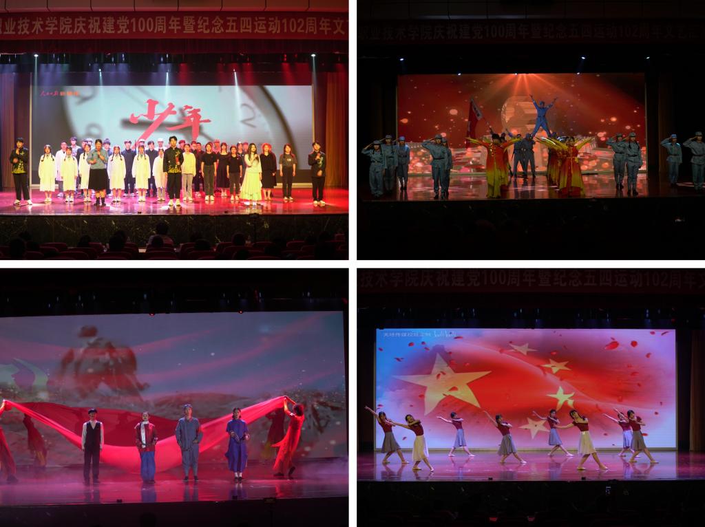 青春向党,奋斗有我。文艺汇演在活力四射的开场舞《舞动青春》中拉开帷幕。紧接着,15个二级学院用形式丰富、精彩纷呈的演出讴歌了党的百年奋斗历程,弘扬了五四运动精神。合唱曲目《我们都是追梦人》《共筑中国梦》激情昂扬,描绘了梦想的美好,激励我校青年学生勇敢追梦、不懈求索;舞蹈节目《我生长的地方》《灯火里的中国》《红船》《绒花》《红旗映初心》舞姿优美动人,用极富张力的肢体表演诠释了爱党爱国爱家乡的青年情怀;舞台剧《云端之上》《生命的河》《少年》《红色足迹》《信仰 青春 传承》致敬历史瞬间,用情景再现的形式教育和引领青年学生坚定理想信念、勇担历史使命;朗诵配音类节目《重温党史 唱响青春》《觉醒年代》《青春中国》字字铿锵、催人奋进,展现了我校学子锐意进取、意气风发的精神风貌。伴随着王璐璐、韩墨两位老师《唱支山歌给党听》的婉转歌声,整场文艺汇演圆满结束。经评委现场评分并统计后,汇演评出了一、二、三等奖,并进行了现场表彰。