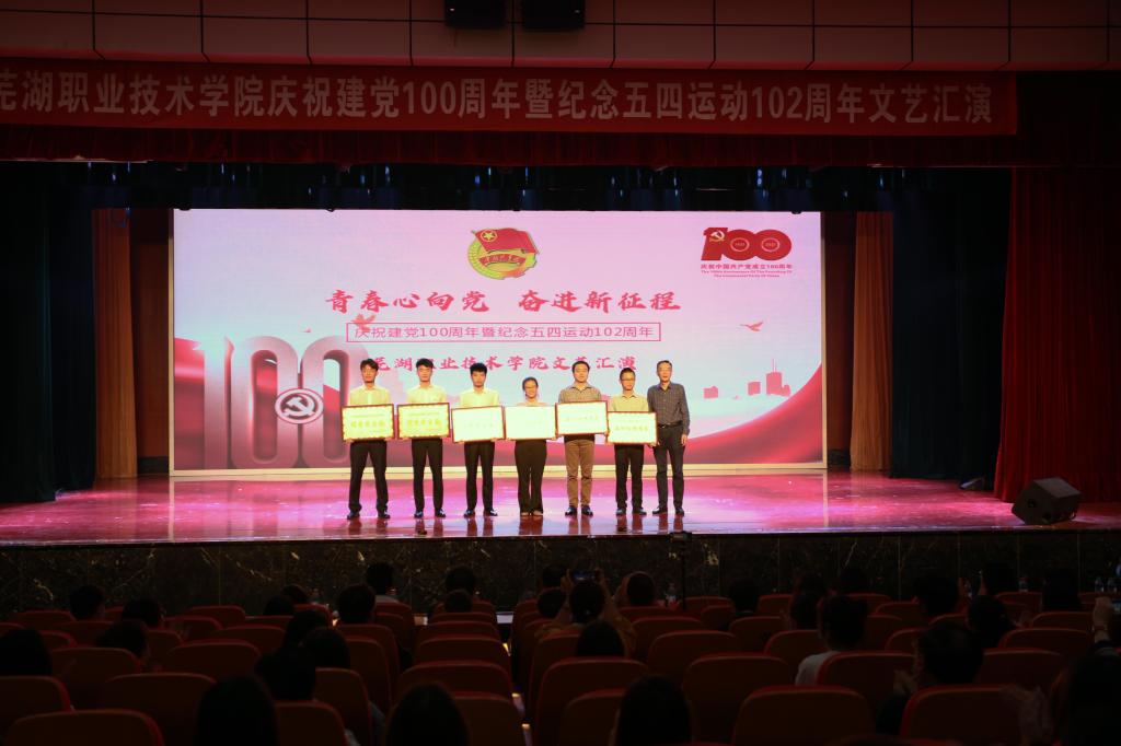 为隆重庆祝中国共产党成立100周年、纪念五四运动102周年,树立标兵典型,推动下一阶段校内团学工作更好地开展,5月19日下午,学校于南校区大礼堂举办了“青春心向党 奋进新征程”庆祝建党100周年暨纪念五四运动102周年芜湖职业技术学院文艺汇演。校党委副书记吴长湖出席活动,相关职能部门及二级学院领导、老师以及学生代表观看了演出。