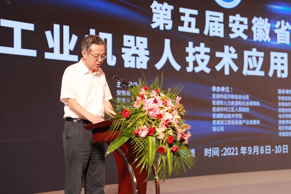 高武在颁奖致辞中表示,举办工业机器人技术应用技能大赛是落实习近平总书记重要指示精神、加快技能安徽建设的生动实践,是服务支撑我省科技创新策源地、新兴产业聚集地、改革开放新高地和经济社会发展全面绿色转型区建设的具体举措。为做好本次比赛各项工作,学校高度重视,精心组织,以确保大赛全面展示我省技术界人才精湛的技术水平和良好的精神风貌,取得了良好的效果。作为全国首批、全省首所国家示范性高等职业院校和安徽唯一中国特色高水平高职学校建设单位,学校将坚持扎根中国大地办大学、立足区域实际谋发展,建设“芜湖版本”的本科层次职业学校,将学校建成区域高端人才的“蓄水池”和“大国工匠”的摇篮,努力为新阶段现代化美好安徽建设提供强大人力支持和技能支撑。