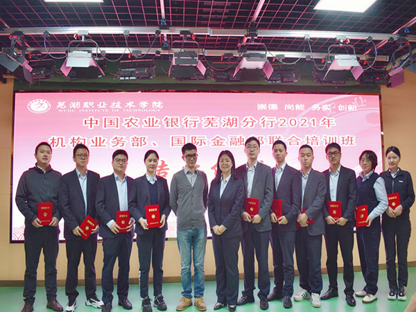 10月15日,由我校承办的中国农业银行芜湖分行2021年机构业务部、国际金融部联合培训班在我校南校区正式开班。中国农业银行芜湖分行党委委员、副行长高静,我校副校长刘育红、农行机构业务部总经理臧礼礼、国际金融部总经理陆卫宁、我校继续教育学院院长荣世雄出席开班仪式,继续教育学院副院长赵敬德主持开班仪式。来自中国农业银行芜湖分行机构业务部、国际金融部以及各区、县支行的50位学员参加了此次培训。