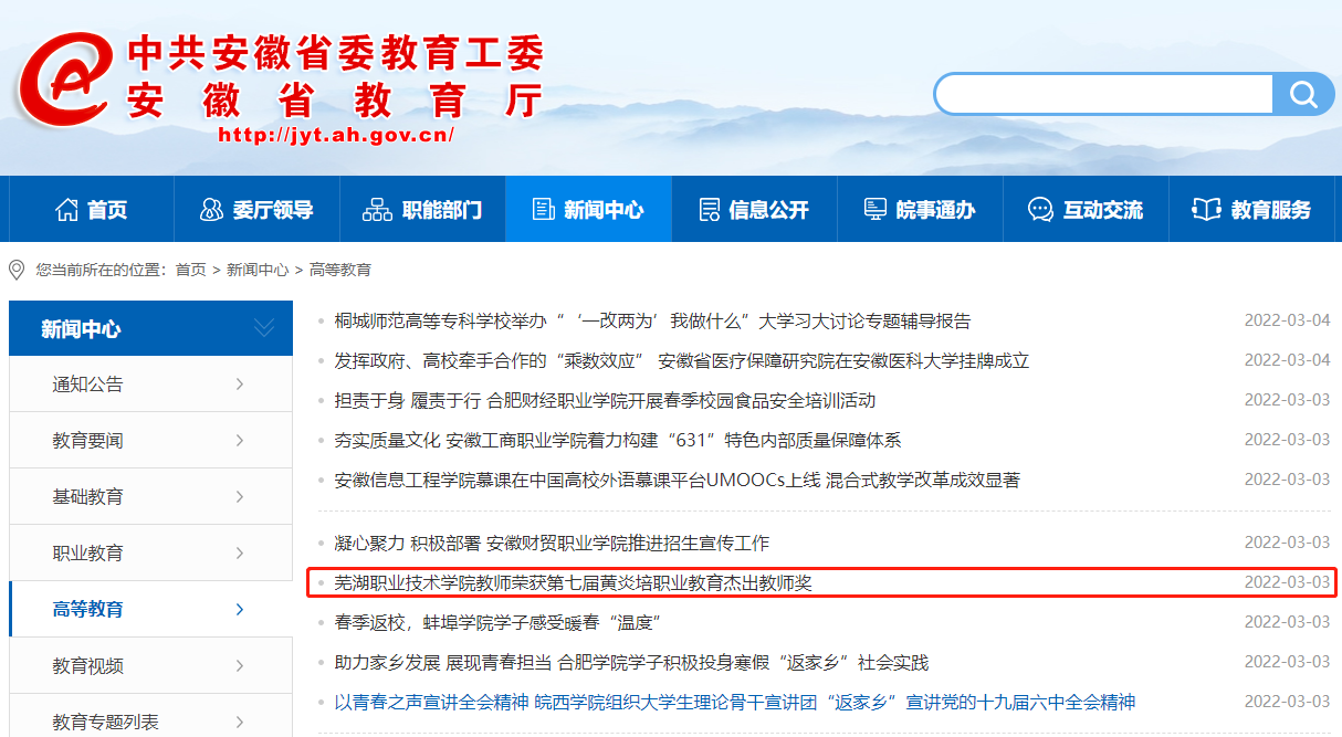 近日,中华职业教育社公布第七届黄炎培职业教育奖获奖名单,芜湖职业技术学院教师周自宝荣获本届黄炎培职业教育奖杰出教师奖。