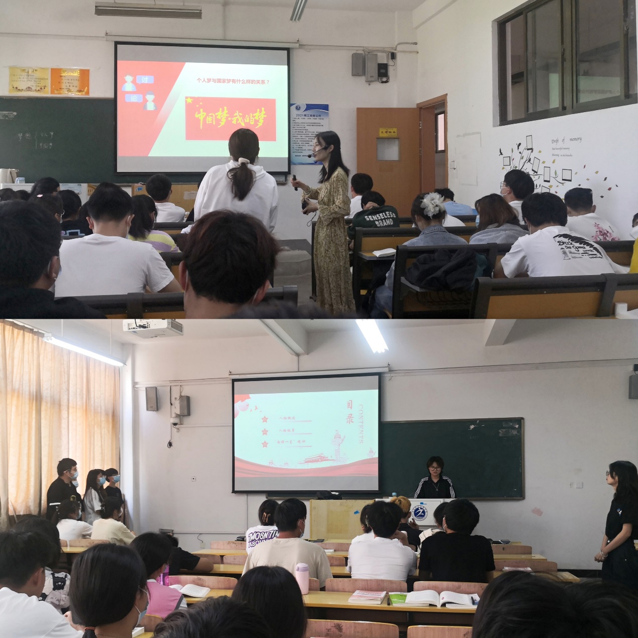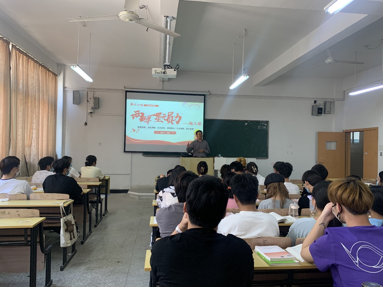 袁家和随堂观摩了吴素娟、徐小琴老师的《毛泽东思想和中国特色社会主义理论体系概论》课程教学情况,边听边记。课后,袁家和与师生们进行了交流,充分肯定了在理论课教学中将学生身边疫情防控的案例融入课堂教学的做法。课堂中,听完21级电子商务班杨玲和杨晨两位同学讲述的“两弹一星”元勋孙家栋和钱三强的故事,袁家和走上讲台,由感而发,作为一名浙江大学的毕业生,向同学们分享浙大老校长钱三强教授的故事。从“千年名门望族、两浙第一世家”的钱氏家族讲到“无何不开科”的山西何氏家族,再讲到何泽慧先生和温家宝总理的故事……分享中,袁书记引经据典、妙语迭出,鼓励同学们深入学习“两弹一星”精神,激励他们在今后的学习、生活中更加努力学习、砥砺奋进。最后,袁书记告诫同学们,今天正值五四青年节,在中国共产主义青年团成立100周年来临之际,广大芜职学子应该牢记总书记对青年的嘱托,以更加饱满的热情和昂扬的斗志,积极投身到实现“两个一百年”辉煌目标的奋斗征程中,为伟大的共青团事业增光添彩,以更加优异成绩献礼党的二十大。