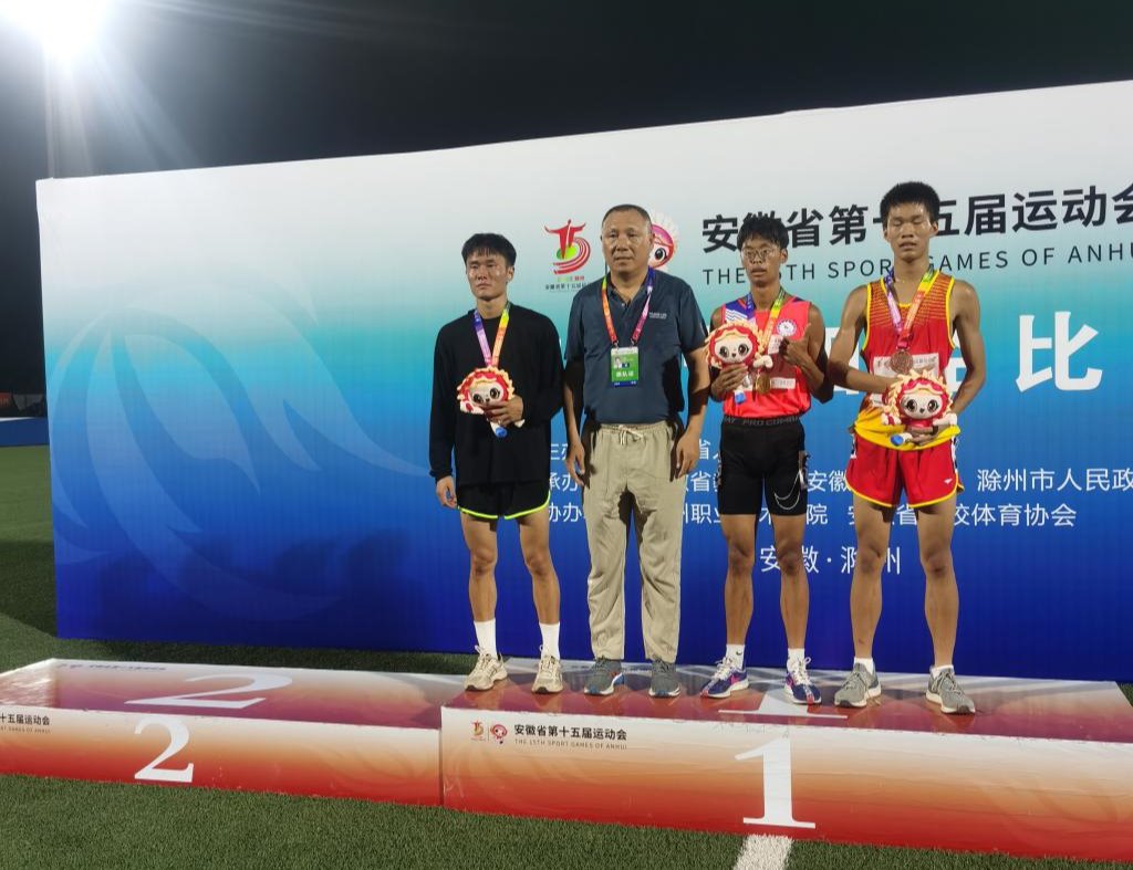 8月18日至25日,安徽省第十五届运动会高校部田径比赛在滁州职业技术学院顺利举行,来自全省76所高校1044名运动员在炎炎烈日下展开了激烈角逐。在宦集体、潘云磊、万朝阳、朱春老师的带领下,我校共派出何业丰等15名男女运动员,参加了乙组二十四个项目的比拼,经过为期八天紧张而激烈的拼搏,共获得:一等奖(第1名)3项,二等奖(第2-4名)11项,三等奖(第5-8名)4项,收获“3金5银3铜”的省运会历史最好成绩。同时,常康安、顾雅雯、何业丰三位同学被评为“体育道德风尚奖”运动员称号。