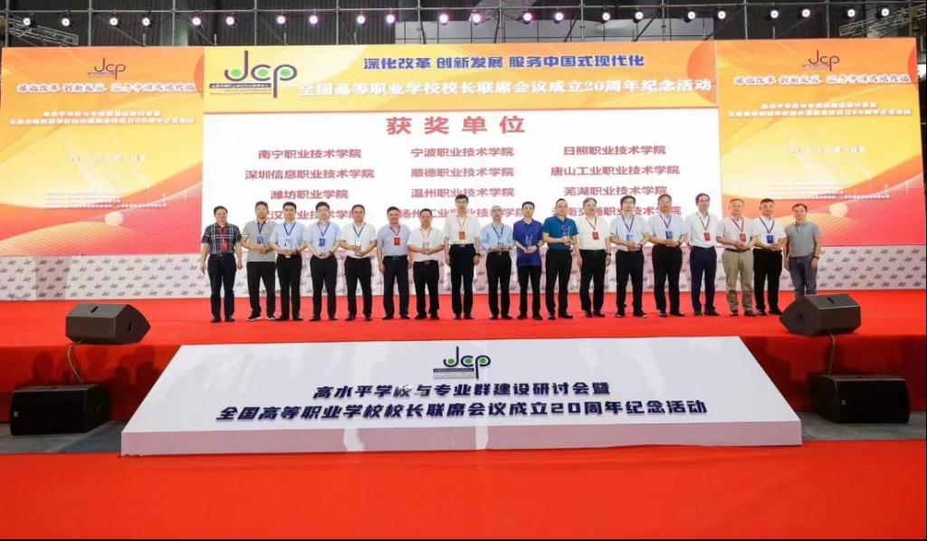 会上颁发了“全国高等职业学校校长联席会议服务贡献奖”,季慕寅作为我校代表上台领奖。