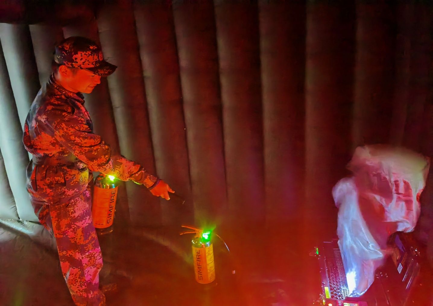 本次演练培训分为消防安全知识、模拟灭火演练、模拟烟雾逃生体验三个部分。保卫处消防技防科顾玮老师从火灾特点及危害性、学校宿舍火灾隐患、公共区域安全、消防安全责任、灭火器使用、初起火灾的扑救和火场逃生技能等方面做了深入浅出的讲解;在模拟灭火体验区,同学们分组进入模拟灭火体验馆,依次体验使用灭火器扑灭初起火灾的全过程,初步掌握了灭火器的使用方法,克服对火灾的恐惧心理。模拟灭火体验馆设备实时对体验情况进行识别、打分,综合分析体验者灭火器使用步骤、把持姿势、灭火时长、距离、效果等诸多要素,实现体验结果可溯。
