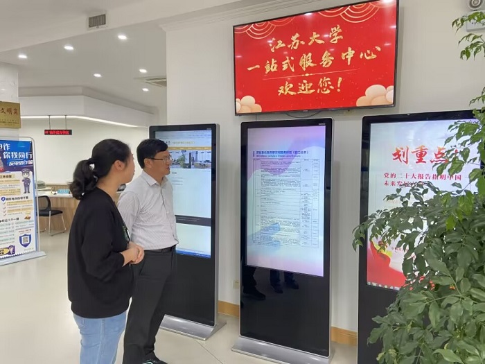 江苏大学党委常委、副校长任旭东、江苏大学学生工作处处长任泽中热情欢迎我校一行,任泽中带领参观了学校“一站式”学生事务中心等社区场所。