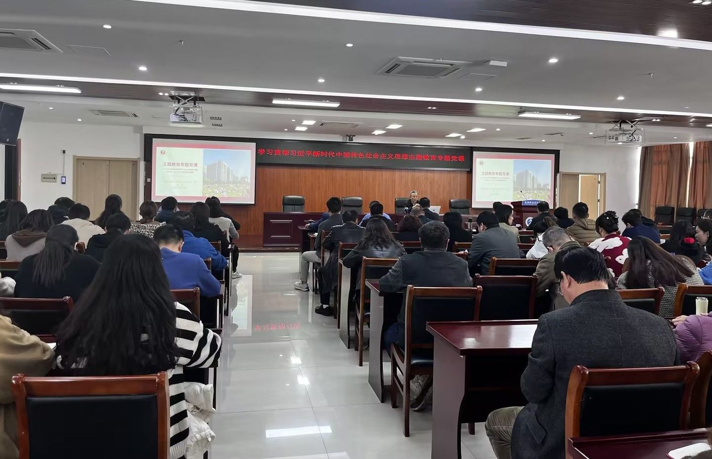 为深入学习贯彻习近平新时代中国特色社会主义思想,推动主题教育走深走实。11月22日下午,校党委副书记、院长高武在正德楼12楼会议室讲授《以习近平新时代中国特色社会主义思想凝心铸魂,担当实干,全力办好人民满意的职业教育》为题的主题教育专题党课。校党政班子成员、机关党委全体党员、职业师范学院班子成员及支部书记参加了党课学习。