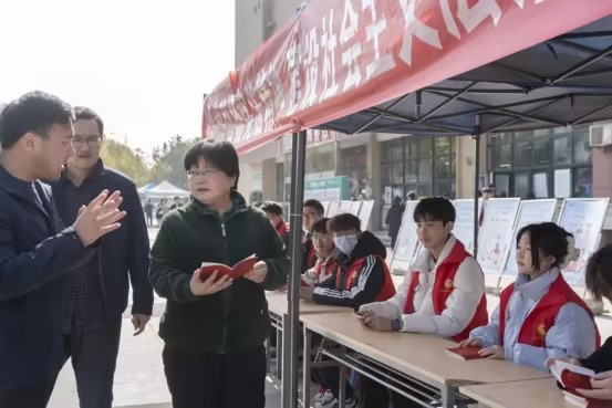 阐解宪法要义,维护宪法权威。12月5日,校团委在文津校区三食堂广场开展了“宪法进校园”宣传活动。校党委委员、纪委书记罗珊红来到活动现场,亲切地问候学生,与青年学子们同赴“法治之约”。活动过程中,青年志愿者们用通俗易懂的语言,为过往同学讲解了宪法的核心要义、地位价值等,并给大家分发《中华人民共和国宪法(便携珍藏版)》手册,号召每一位青年学子学法懂法、守法用法,争做守法合格公民,勇当守护宪法权威卫士。