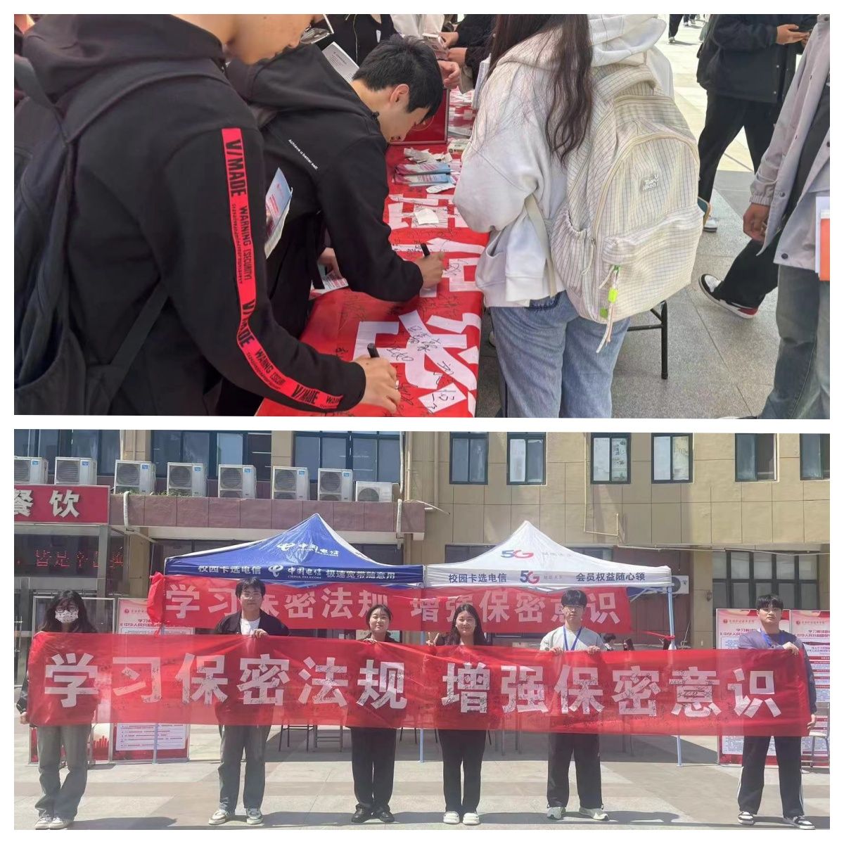 学校充分利用LED电子屏、宣传栏等平台播放保密宣传标语,制作保密展板、宣传册等普及保密法律法规知识,引导全校师生不断增强保密法治意识,筑牢新时代安全防线。相关部门组织校保密办全体成员、学生校长助理进行新保密法专题学习,了解其发展沿革、修订颁布实施的背景、意义及修改内容,集中观看由中央保密办(国家保密局)最新组织摄制的保密档案系列微纪录片《传承红色保密印记》。此外,学校还结合“4·15”全民国家安全教育日,通过发放宣传单页、开展保密签名、举办保密展览等形式,在广大师生中加强新保密法教育宣传,强化师生国家安全意识。