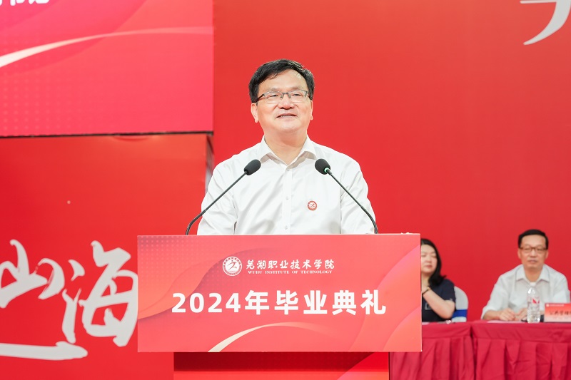 来自智能制造学院的林静辉作为教师代表发言,衷心祝愿芜职学子们秉持“崇德、尚能、务实、创新”的校训,做人诚实踏实,与时俱进,为国家的繁荣和民族的复兴贡献青春与智慧,书写出属于他们自己的人生篇章;安徽中鼎密封件股份有限公司全球首席财务官、经济管理学院毕业生易善兵作为杰出校友上台发言,他勉励毕业生勇敢追求梦想,踏实前行每一步,以不懈的努力和坚定的信念,创造属于自己的辉煌未来;食品与生物工程学院2024届毕业生陈贝贝作为毕业生代表发言,她深情回顾母校时光,并祝愿母校繁荣育才,教师桃李满园,同窗前程似锦,共同以校训为引,为实现中国梦贡献青春与力量。