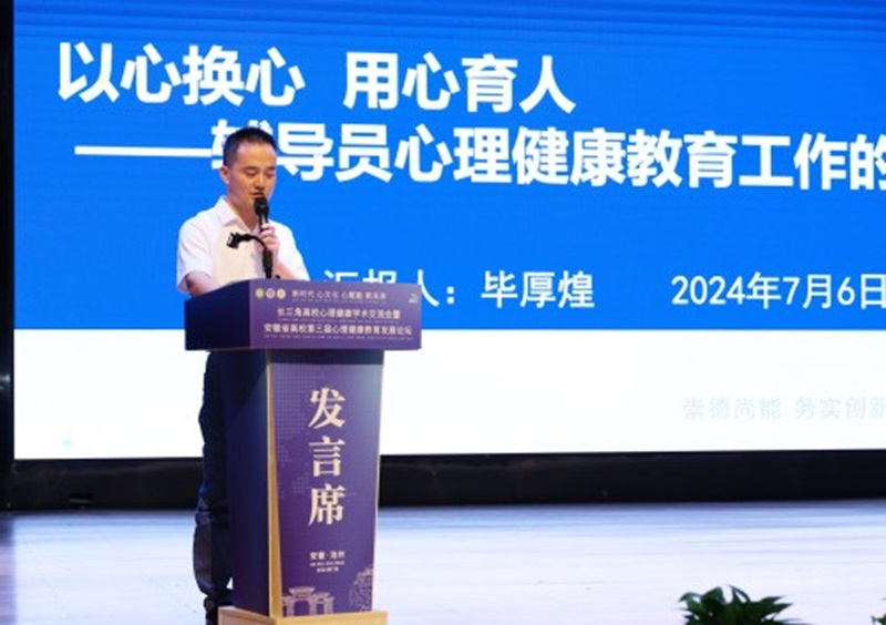 我校优秀辅导员代表毕厚煌老师受邀在会议分论坛上做了“以心换心 用心育人”的工作经验分享,他从具体工作实际出发,将心理育人和辅导员日常工作紧密结合,论坛现场获得与会专家、教师的一致好评,收获阵阵掌声。