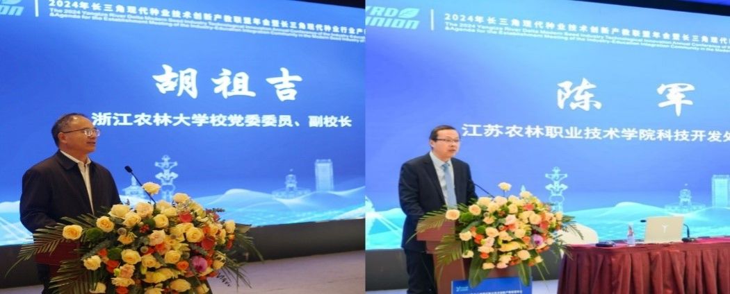 会上还进行了长三角现代种业行业产教融合体成立大会。长三角现代种业行业产教融合体是由浙江勿忘农种业股份有限公司、浙江农林大学、温州科技职业学院、芜湖职业技术学院牵头,大会审议通过了共同体章程,表决通过了共同体理事长单位及副理事长单位名单,理事长、秘书长、副秘书长名单。牵头单位浙江农林大学党委委员、副校长胡祖吉,温州科技职业学院副书记、院长陈联盟等发表讲话,对推进落实“一体两翼”战略任务,努力打造中国种业发展的“职教高地”,形成一个具有区域示范性的“产教布局高度匹配、服务高效对接、支撑现代种业高质量发展”的产教融合共同体样本等提出建议和设想。(文/丁晶 李文全 图/黄千姿 胡凤超 审/章素华)