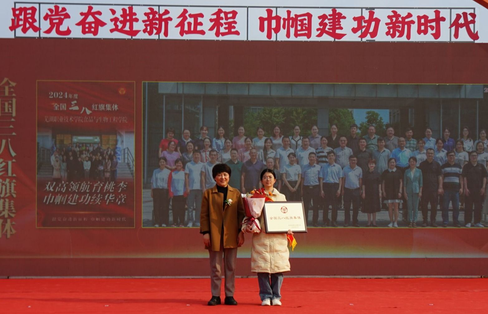 3月6日上午,省妇联在省行政中心举行安徽省纪念“三八”国际妇女节115周年暨表彰大会,我校食品与生物工程学院光荣地被授予“全国三八红旗集体”称号,并于当天下午在湾沚区接受了市级表彰。这一荣誉的获得,不仅是对我校食品与生物工程学院女教职工们在教学、科研、社会服务等方面所做出的杰出贡献的肯定,也是对学校整体办学实力的高度认可。