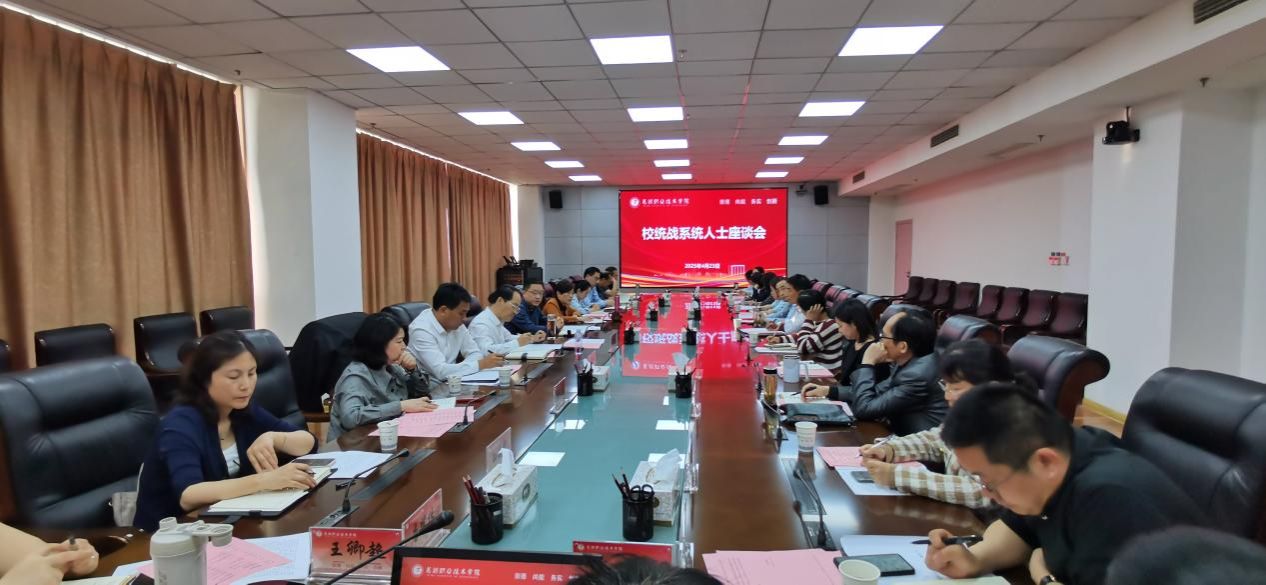 4月23日下午,学校召开统战系统人士座谈会。校党委书记王志鹏、副院长刘育红出席会议并讲话,党委委员、组织部(统战部)部长李冬生主持会议,民盟、民进等民主党派负责人、党外知识分子联谊会、侨(留)联代表参加会议,部分二级学院党总支书记受邀参加会议。