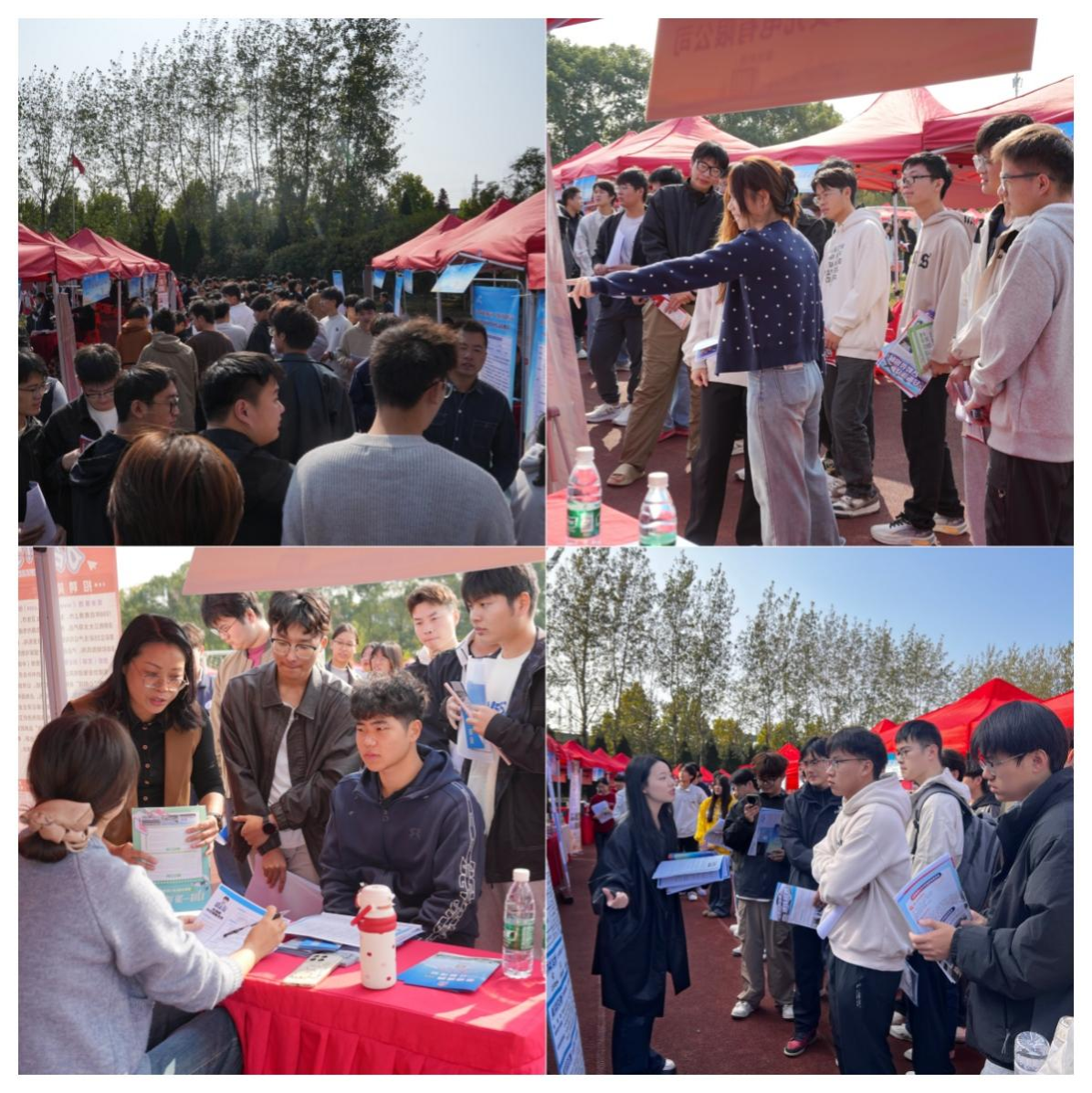 现场人头攒动,气氛热烈。毕业生们手持应聘简历,在企业展位前驻足咨询岗位信息、职业发展等。各用人单位向毕业生详细介绍招聘岗位职责、薪资福利、晋升通道。各学院负责人、就业指导老师和毕业班辅导员深入招聘现场,积极推荐毕业生。招聘会现场还设置了简历诊断、政策宣讲、志愿服务专区,为用人单位和求职毕业生提供全方位保障,提升对接效率与参会体验。当天下午还举办了180余场宣讲、笔试、面试活动,为毕业生就业打通最后一公里。