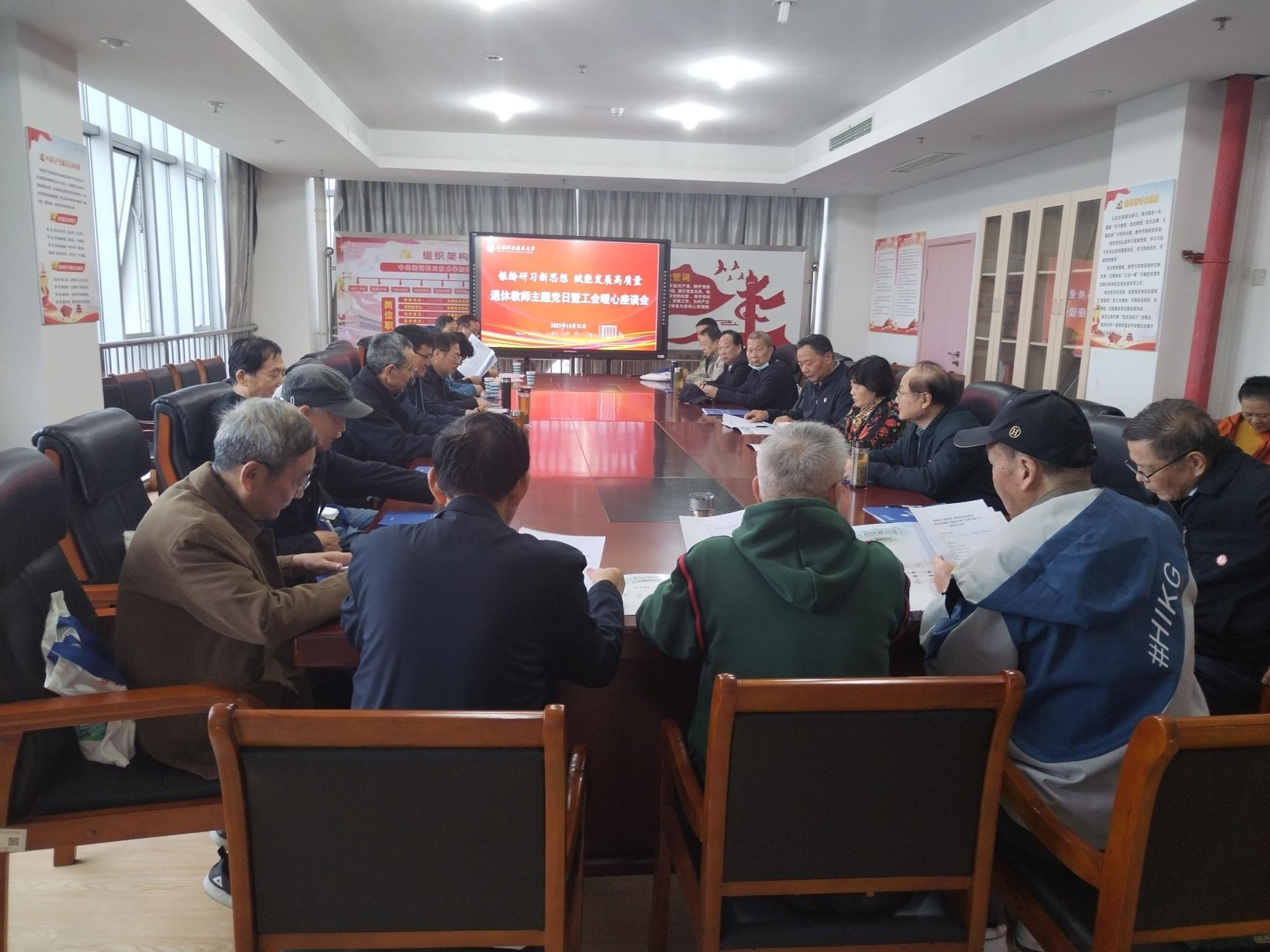 10月31日上午,机关党委、校工会组织离退休党员开展“银龄研习新思想 赋能发展高质量”主题党日暨工会暖心座谈行活动。座谈会在学校正德楼623会议室举行,校领导袁家和,工会、机关党委负责人等参加会议。