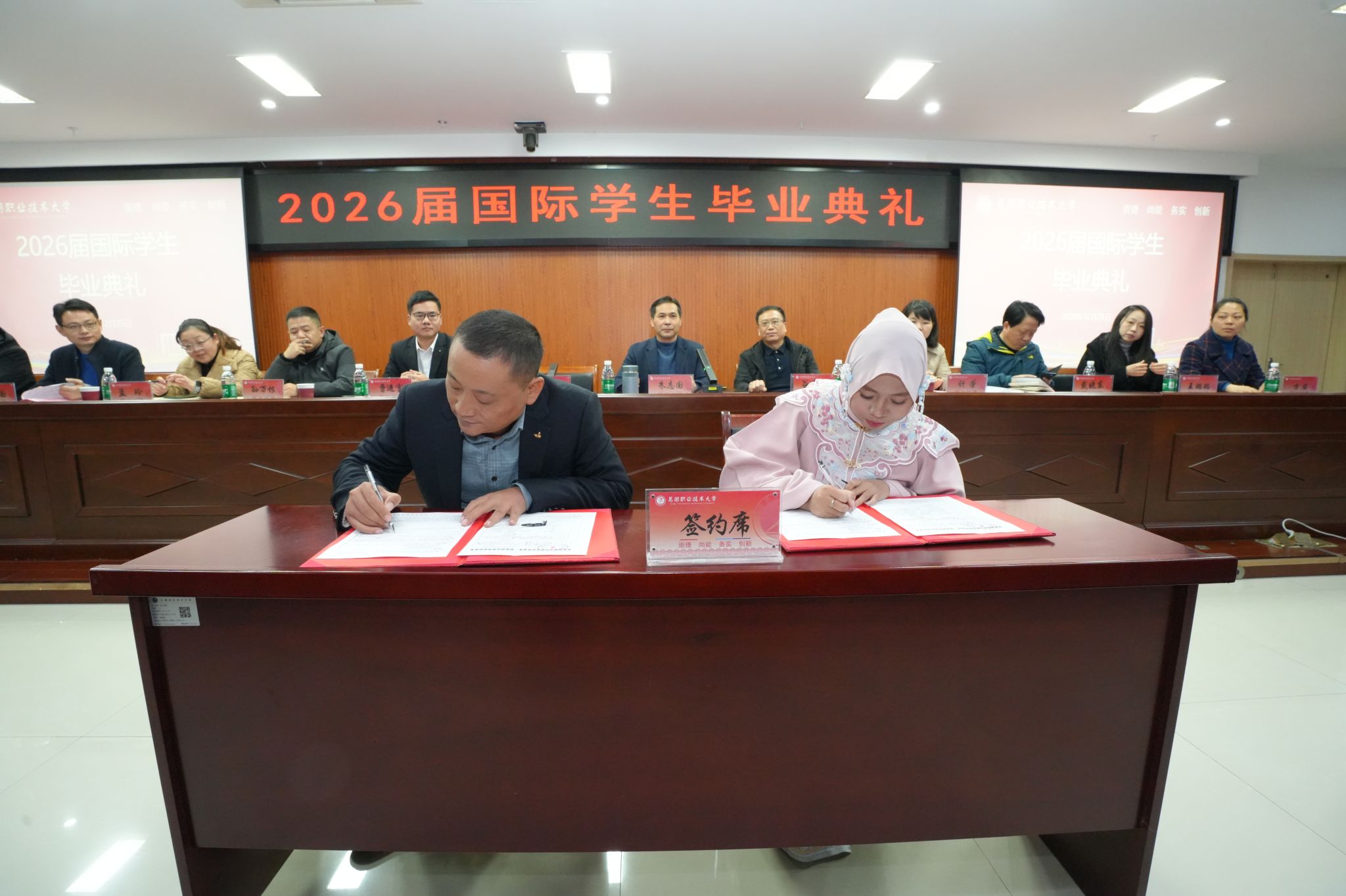 典礼现场,南加海螺常务副总经理段中军与国际学生代表海丽莎签订就业协议。第二期“国际订单班”的所有国际学生均已顺利通过印尼海螺公司的面试并被录取,就业率为100%。