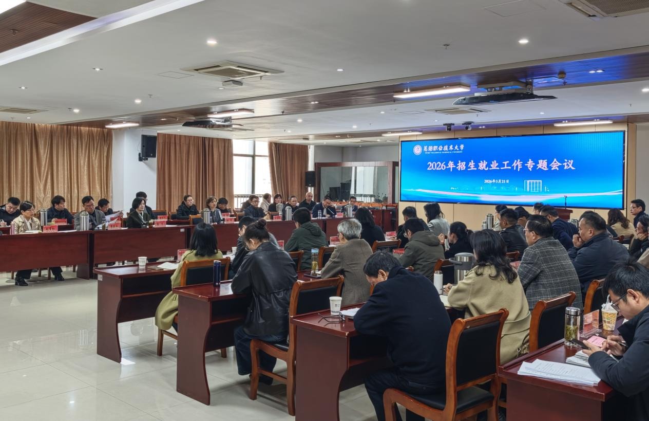 会议传达了全国高校毕业生等青年就业创业工作视频会议精神,招生就业处作工作汇报,全面复盘2025届毕业生就业工作整体成效与不足,对2026届毕业生就业工作进行全方位部署;同时重点分析2026年分类招生考试及对口报名整体情况,详细汇报本年度招生宣传工作方案与具体实施安排。