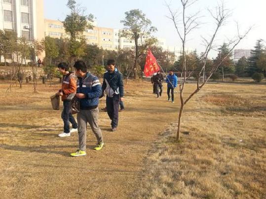 上午八点半志愿者们准时到电气楼门口集合。志愿者共分为三组,并分别负责校园的某一环境区域。任务分配好之后,志愿者们就各自奔赴自己的 “领地”。第一组的同学主要负责清理电气楼门口草坪里的垃圾,第二组负责清理篮球场、排球场和男生宿舍旁边的垃圾,第三组则是在金书记的亲自带领下去清理静心胡、教学楼、图书馆、国贸楼、机械楼以及草坪和花园等处的垃圾。志愿者们皆左手拿着垃圾袋,不时地弯腰去捡地上的各类垃圾。虽然天气有些冷,大家的手都冻得通红,不过志愿服务的心是火热的,大家有说有笑,很快就使校园的环境焕然一新。看着自己的劳动成果,大家的脸上都露出了满意的笑容。