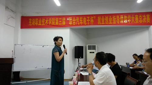 2014年6月6日下午,由院就业指导中心、创新创业中心主办,联合汽车电子有限公司芜湖分公司协办的芜湖职业技术学院第三届“联合汽车电子杯”就业创业指导课程教学大赛总决赛在南区招聘大厅成功举办,来自15个二级学院和院就业部门的13名老师参加了决赛,部分就业创业指导课教师到现场观摩。联合汽车公司人事主管李留洋、学院督导组光玲玲、实验实训中心主任刘永、就业创业工作负责人担任评委,大赛由招生就业处副处长周基燕主持。
