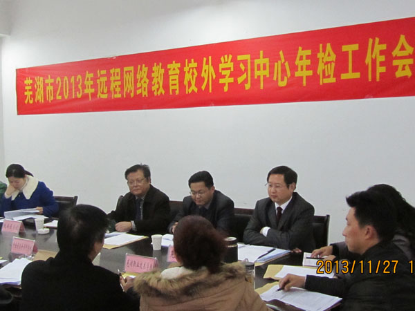 11月27日下午,芜湖市2013远程教育年检工作会议在我院中校区举行,各在芜学习中心负责人参加了本次会议。目前,在芜湖市设立远程教育校外学习中心的高校有浙江大学、华东师范大学、重庆大学、南京大学、西南交通大学、北京中医药大学、江南大学、西南大学和北京大学共9所,分别由我院等八家高校及其资质单位承担。