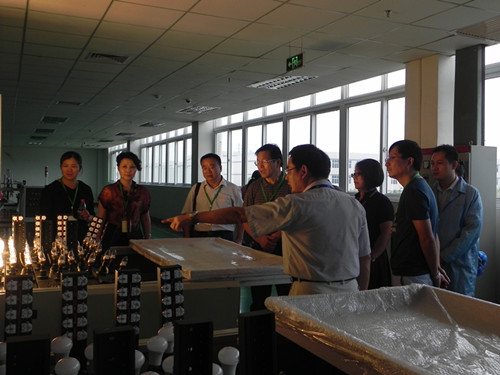 芜湖德豪润达光电科技有限公司1996年成立于广东珠海,2004年在深圳证券交易所上市,2009年作为战略性新兴产业重大项目引进芜湖。一行在公司领导的陪同下参观了LED芯片、照明、器件等生产运作车间,考察了公司员工食堂和宿舍。