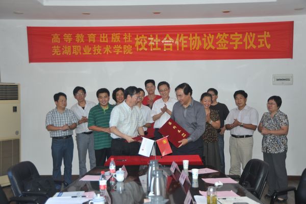 签字仪式上,双方就进一步提高芜湖职业技术学院在办学特色、学科建设、教学质量和教材建设等方面的质量和水平,强化高等教育出版社服务地方、服务学校的功能,在资源共享、优势互补、合作共赢、共同发展的原则下,在学科(专业)建设、课程建设、教学改革和教材建设工作等方面开展合作进行了深入的探讨,合作项目包括特色学科(专业)和课程建设、优秀教材的出版、师资培训、数字化校园建设等。