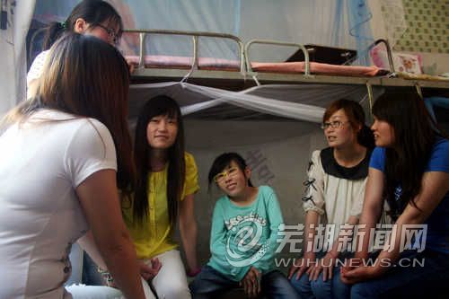 有一次,马肖肖咳嗽总不好,班主任了解后立即陪肖肖到弋矶山医院就诊治疗。诊治过程中,班主任仔细向医生了解肖肖的病情,还为肖肖垫付医疗费用,反复叮嘱她注意事项。室友们也按时给马肖肖倒水,看着她吃药。室友们的所有生活起居都以马肖肖的习惯为主。马肖肖身体弱怕冷,夏天里室友们就很少用电扇。每次大家一起出去吃饭,室友们总是争相给马肖肖夹菜。平时每到开饭的时间,室友们总是主动问马肖肖想吃什么,帮她买回带来;有时候马肖肖自己都不知道自己想吃什么,室友们就给她建议:要是食堂里没有她想吃的食物,大家专门为她到外面去买,只要看见马肖肖吃得有味开心,大家就感到高兴。