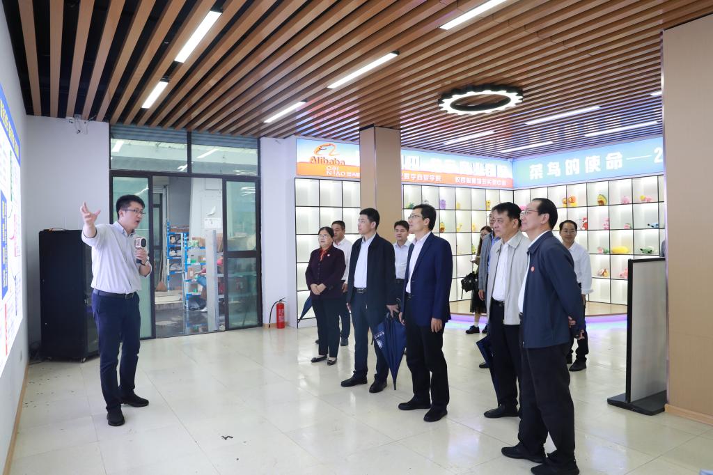 在阿里巴巴数字商业学院,张庆亮考察了天猫校园实训中心,观看了菜鸟驿站智慧物流场景和线上线下实训中心场景。张庆亮指出,这种把课堂搬到实训中心的做法,对于培养市场真正需要的职业技能型学生、鼓励大学生创业具有积极意义和重要引领作用。当看到同学们正在实训中心直播间推售本地螃蟹,张庆亮表示这有利于打造本地品牌、将本地农产品推向市场,符合利农惠农导向和乡村振兴战略。