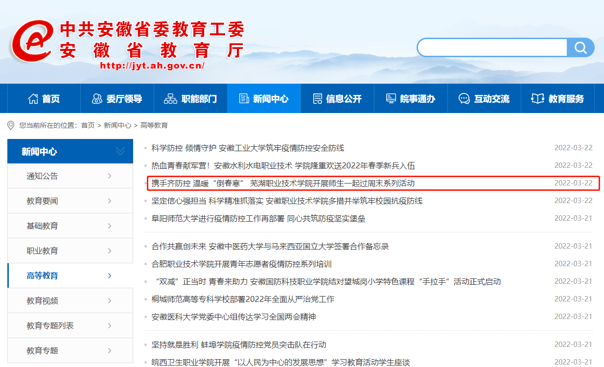疫情的“倒春寒”让这个春天变得有点冷。“坚持就是胜利。”为进一步坚定信心,坚持不懈,积极配合学校各项疫情防控举措,守好校园,打赢疫情防控这场硬仗!芜湖职业技术学院各部门以生为本、精心谋划、协同合作、立即行动,抓细抓实常态化疫情防控,开展全体辅导员老师和学生一起过周末活动,及时做好学生思想疏导,丰富学生业余生活,用心用情服务学生健康成长。