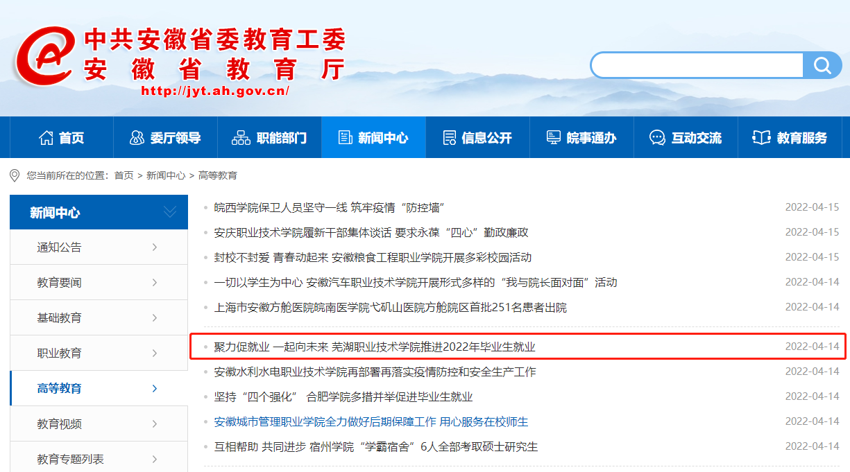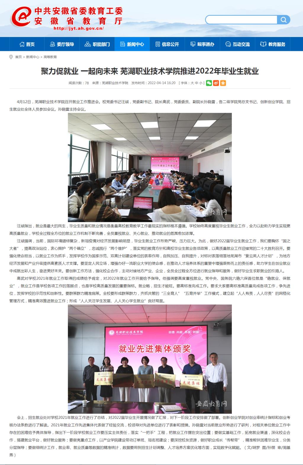 汪斌强调,当前,国际环境错综复杂,新冠疫情对经济发展影响明显,毕业生就业工作形势严峻、压力巨大。为此,做好2022届毕业生就业工作,我们要胸怀“国之大者”,提高政治站位,衷心拥护“两个确立”,忠诚践行“两个维护”,落实党的教育方针和高校毕业生就业各项政策,以高质量就业工作迎接党的二十大胜利召开。要强化使命担当,以就业工作为抓手,发挥学校作为国家示范、双高计划建设单位的表率作用,自我加压、自我提升,对标对表落细落地芜湖市“紫云英人才计划”,为地方经济发展和产业升级提供高素质人才支撑。要坚定人民立场,增强办好一流职业大学的使命感,在推动人才培养体系的重塑中增强乘势而上的责任感,助力学生在创业就业中成就出彩人生,奋进美好未来。要创新工作方法,强化校企合作,主动对接地方产业、企业,全员全过程全方位进行就业指导和服务,做好毕业生求职就业的引路人。