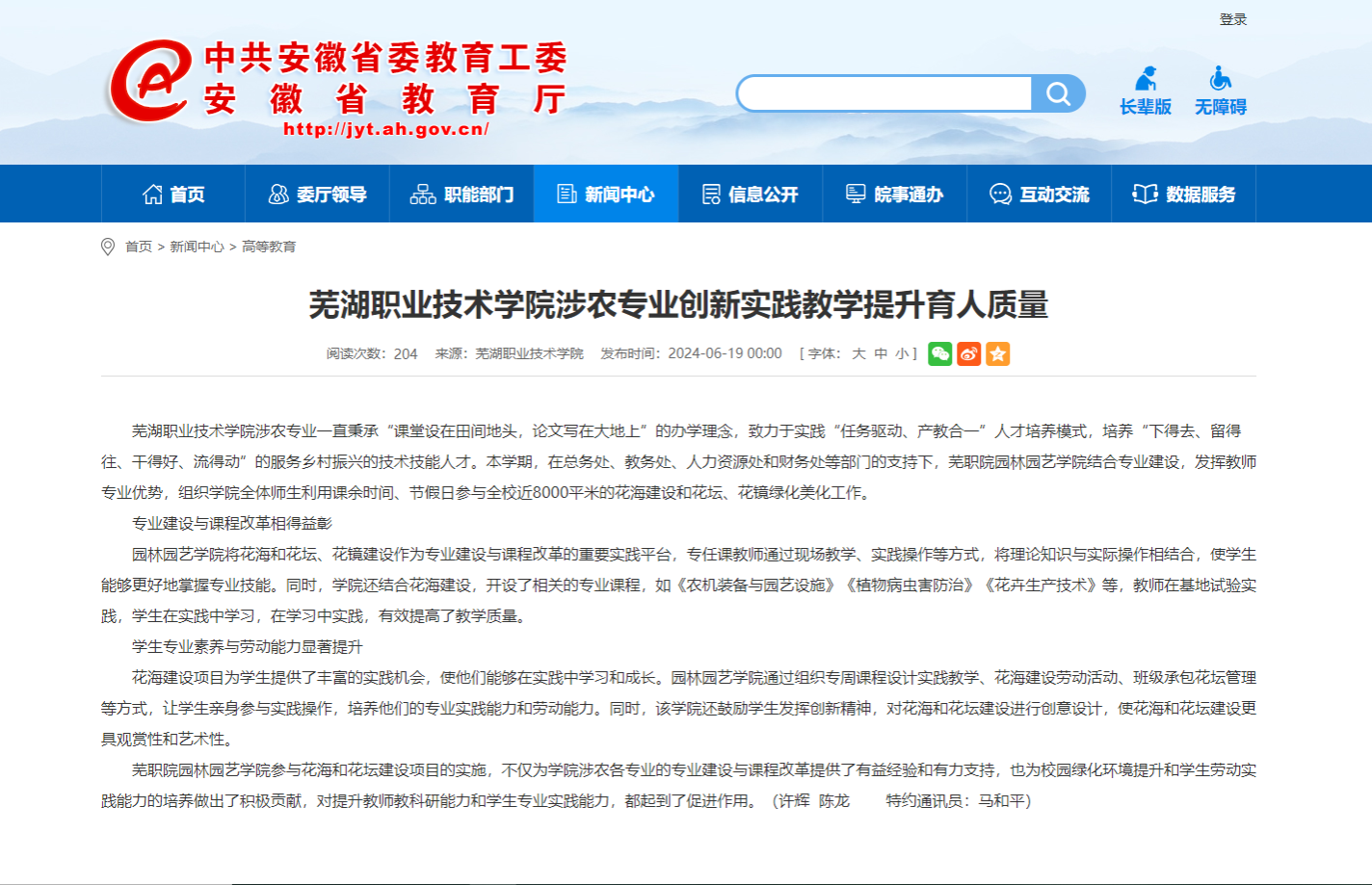 芜职院园林园艺学院参与花海和花坛建设项目的实施,不仅为学院涉农各专业的专业建设与课程改革提供了有益经验和有力支持,也为校园绿化环境提升和学生劳动实践能力的培养做出了积极贡献,对提升教师教科研能力和学生专业实践能力,都起到了促进作用。(许辉 陈龙 特约通讯员:马和平)