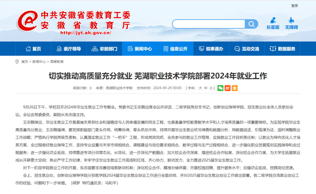 9月26日下午,学校召开2024年毕业生就业工作专题会。党委书记王志鹏出席会议并讲话,二级学院党总支书记,创新创业指导学院、招生就业处全体人员参加会议。会议由党委委员、副院长朱志国主持。