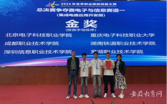 10月29日,2024年世界职业院校技能大赛总决赛争夺赛电子与信息赛道一“集成电路应用开发”赛项在深圳信息职业技术学院落下帷幕,来自全国各省、市、自治区的56支代表队,200多名选手同台竞技。经过两天的激烈比拼,我校电气与自动化学院王苹、张玉明老师指导的邰雨、朱子骞、赵心星团队,不畏强手、勇于拼搏,以小组第一、总分第四的成绩斩获该赛项金奖。