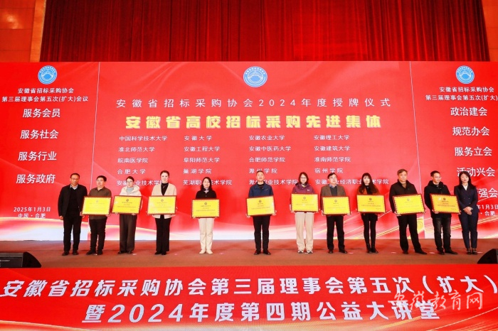 1月3日,由省招标采购协会主办,合肥工业大学承办的高校采购专委会第六次会议暨2024年度安徽省高校采购论坛在合肥举办。芜湖职业技术学院获得“2024年度安徽省高校招标采购先进集体”“安徽省2024年度招标信息发布规范单位”“2024年度安徽省招标采购协会专家库应用示范单位”等荣誉称号;学院国有资产管理处后博荣获“2024年度安徽省高校招标采购先进个人”称号。