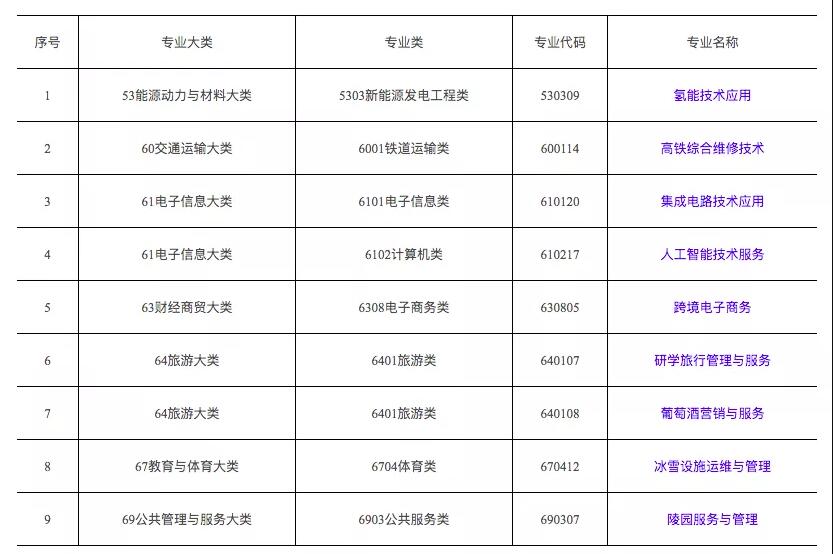 根据《普通高等学校高等职业教育(专科)专业设置管理办法》,在相关学校和行业提交增补专业建议的基础上,教育部组织研究确定了2019年度增补专业共9个,现予公布,自2020年起执行。