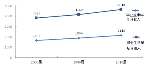 图2高职毕业生半年后及三年后的月收入(单位:元)