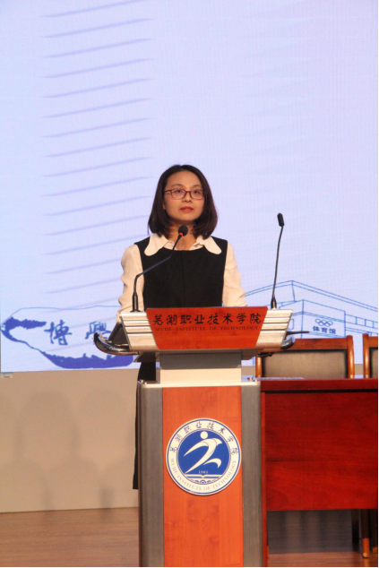 优秀教师代表李娟上台发言,她引用高等数学中微积分的知识借喻新生们的校园生活,从学生的学习、生活的角度出发,妙语连珠,循循善诱,告诫本科班新生们要珍惜时间,善加规划人生,做到校训中崇德、尚能、务实、创新的要求,其精彩的发言引得台下掌声阵阵。