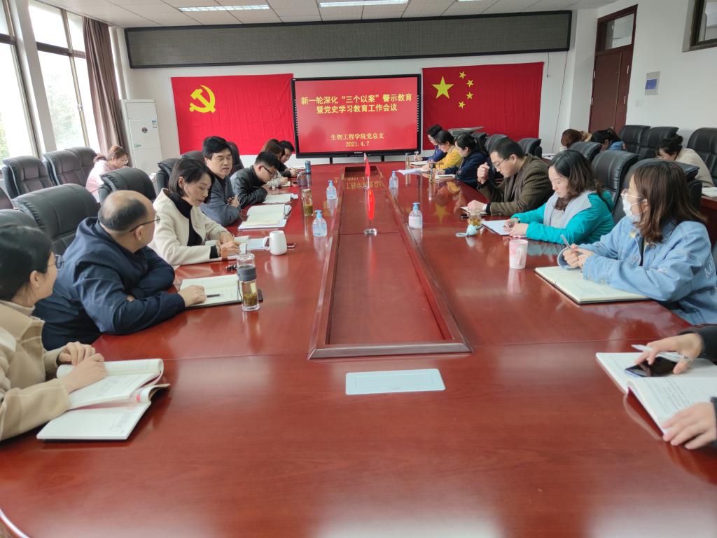 4月7日,生物工程学院召开新一轮深化“三个以案”警示教育暨党史学习教育工作会议。会议由学院党总支书记彭常安主持,学院各党支部书记及全体教师党员参加会议。