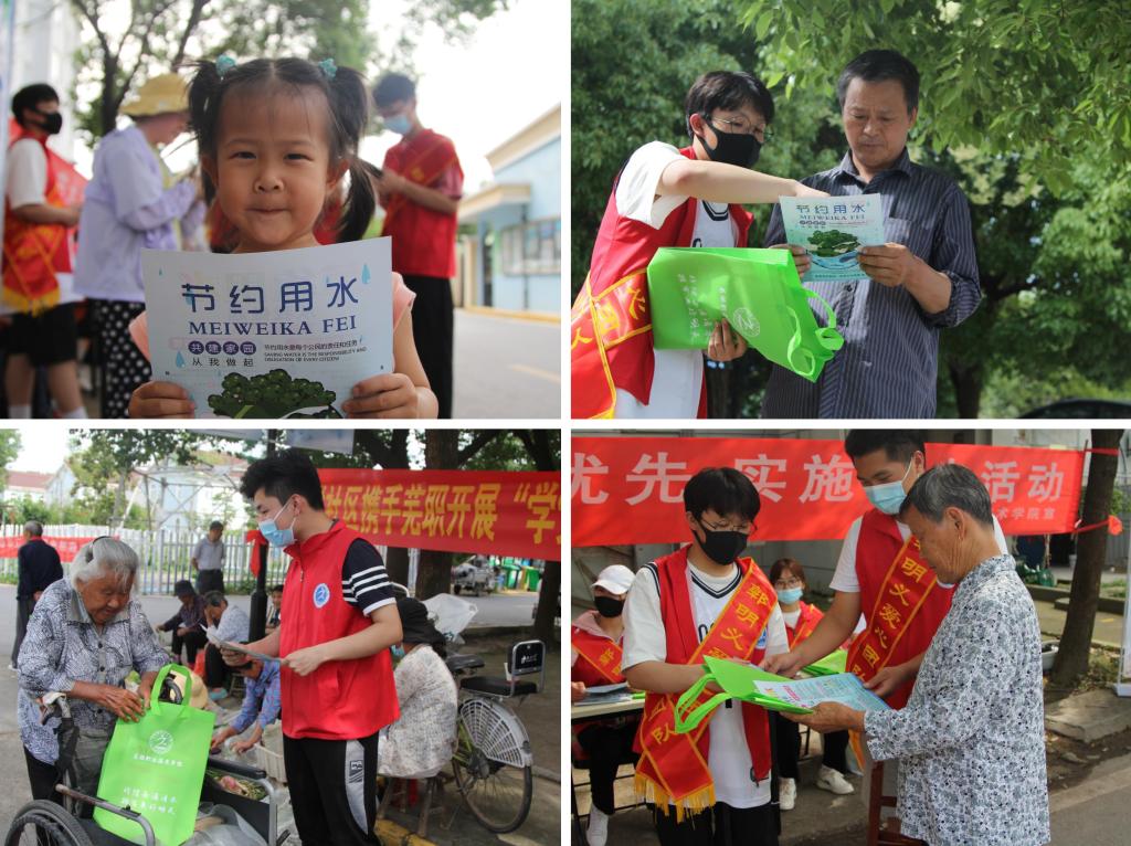 水是生存之本,文明之源,生态之基,为了更好的向广大市民宣传国情水情,增强全社会惜水、节水、护水意识,6月4日下午,我校总务处联合团委、学生会组织了12名大学生志愿者前往芜湖市弋江区火龙街道四联社区开展了以“坚持节水优先,实施节水活动”为主题的公益宣传活动。