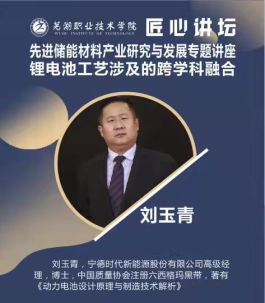 芜湖职业技术学院材料工程学院特邀宁德时代新能源科技股份有限公司高级经理刘玉青博士、资深工程师翟平升等企业相关部门负责人深入参观见学。于9月10日在材料楼报告厅和储能材料技术专业的同学进行了交流,详细介绍了锂电池生产制造工序。